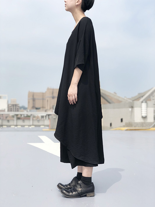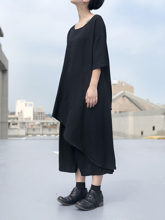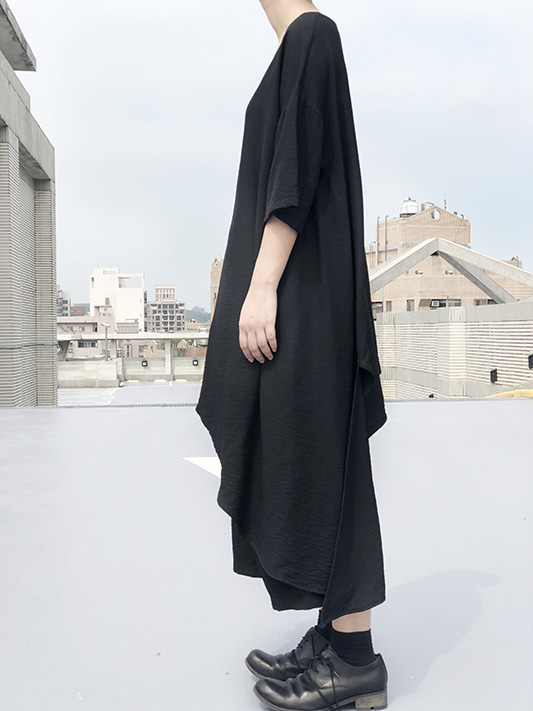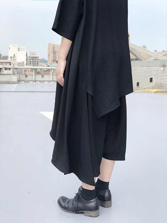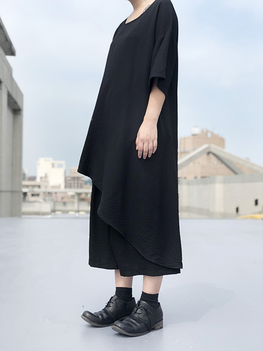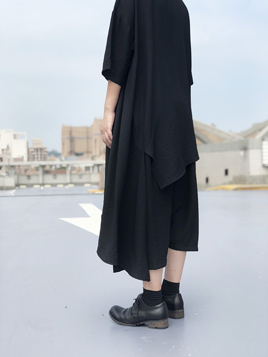 Jul 18SS NEW OVERSIZE垂墜不規則開衩設計長版上衣 黑