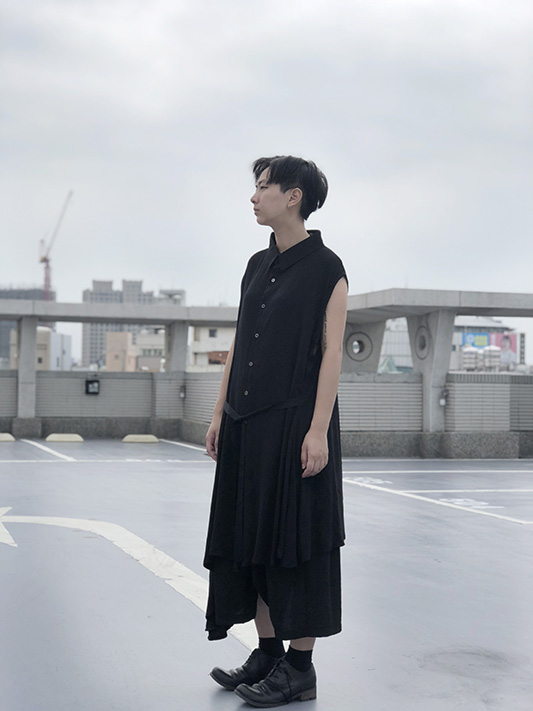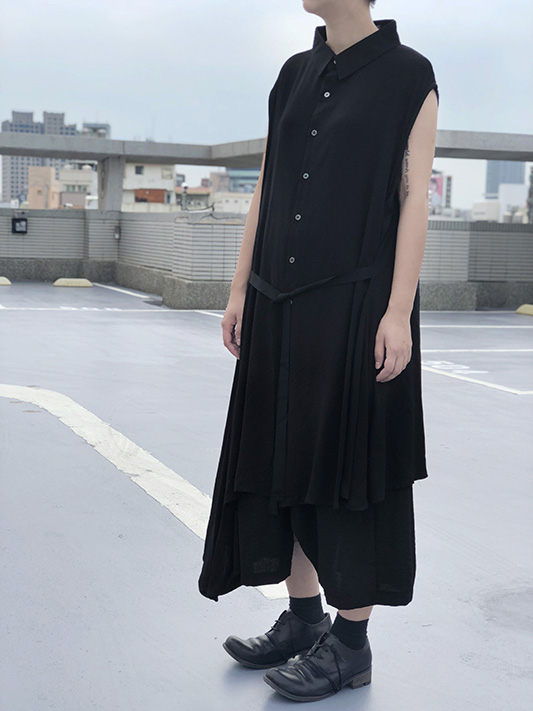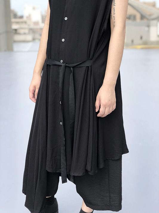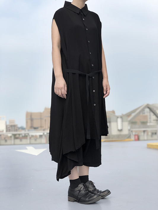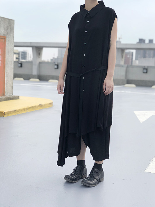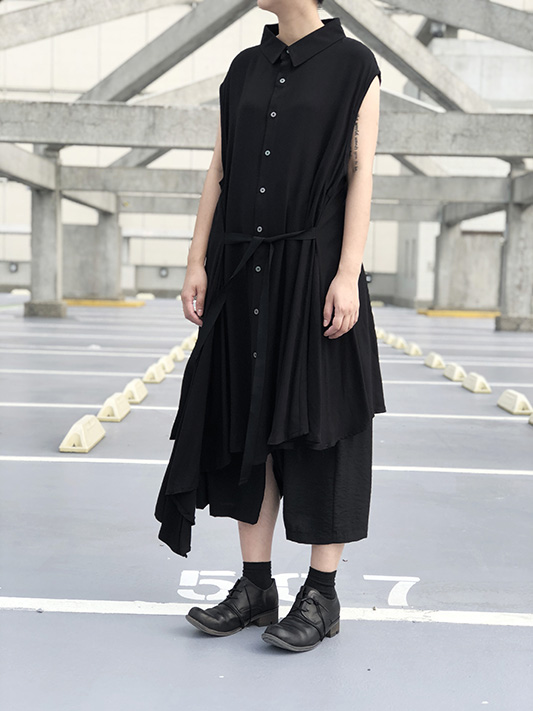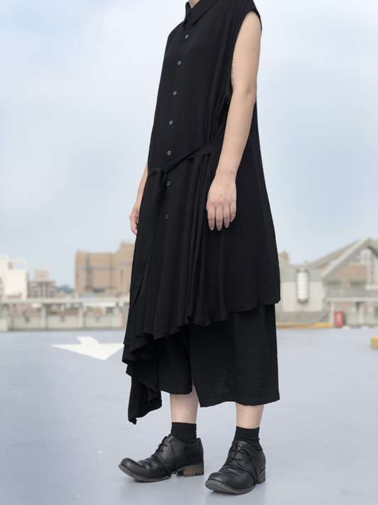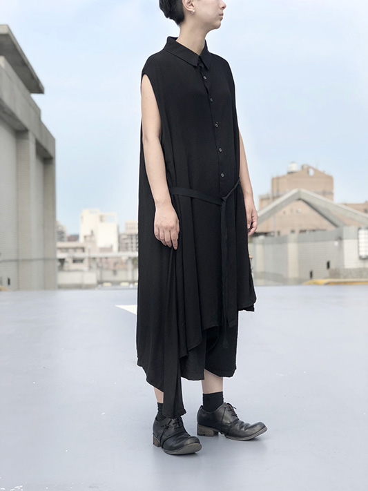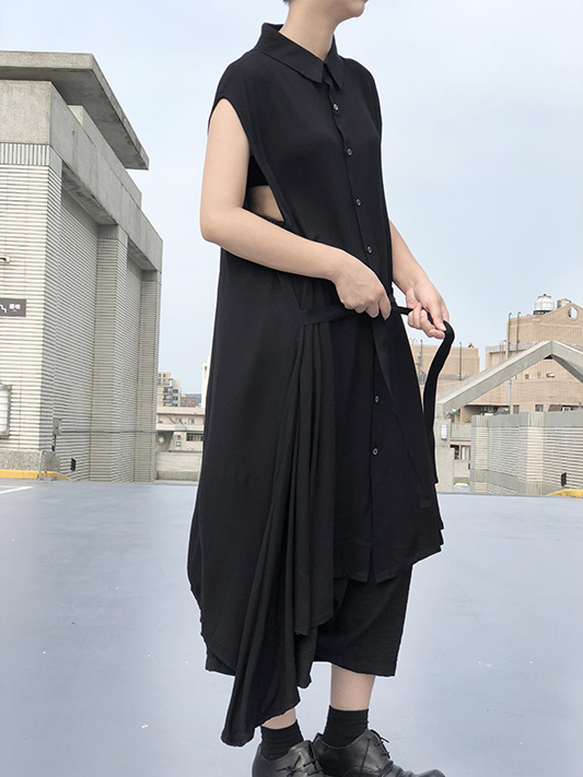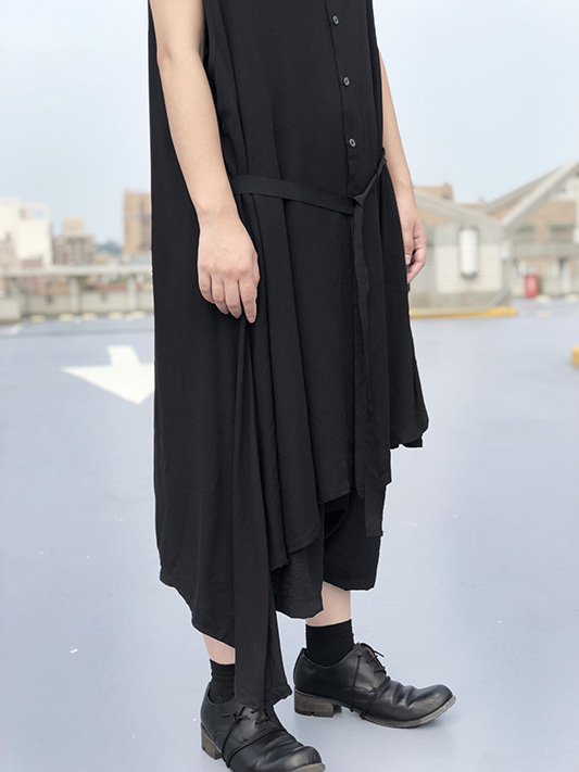 Jul 18SS NEW 垂墜不對稱剪裁繫帶無袖襯衫 黑