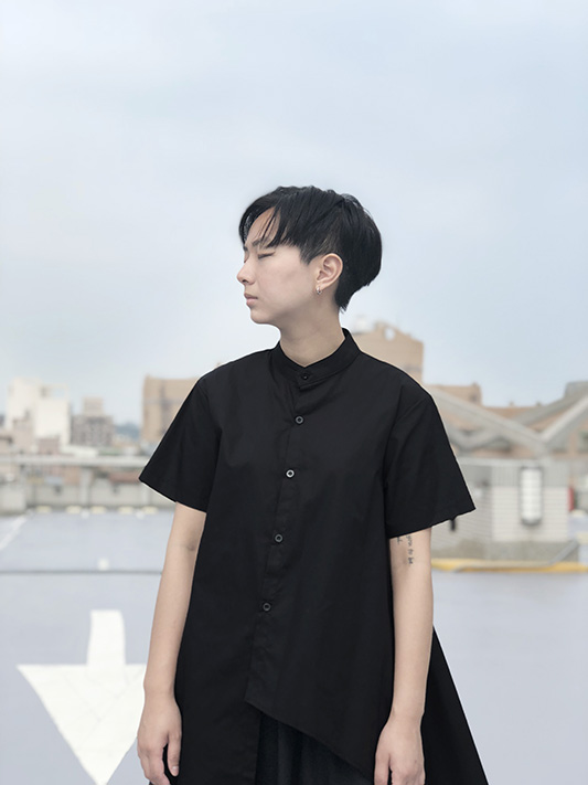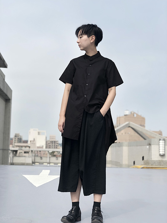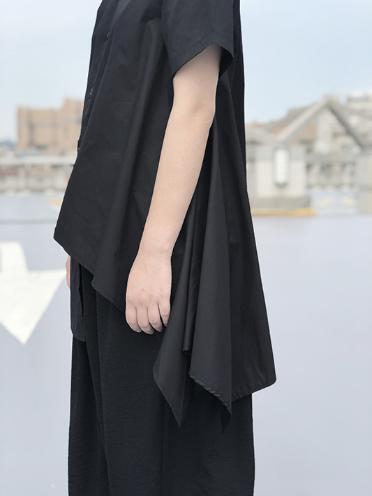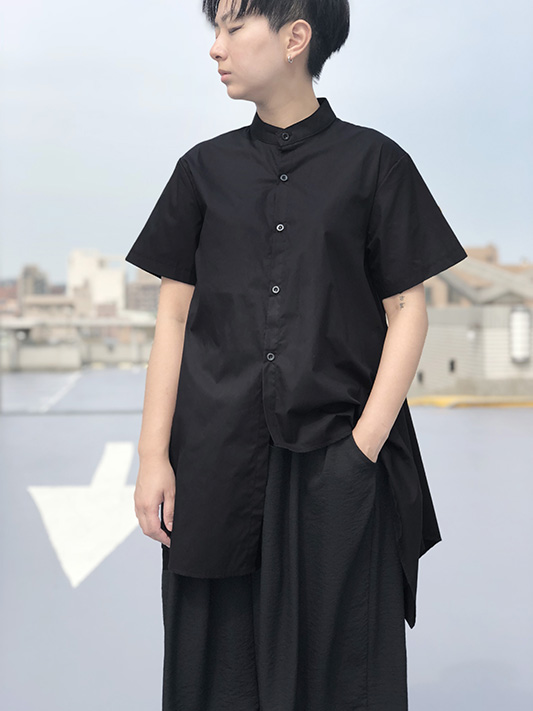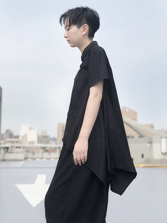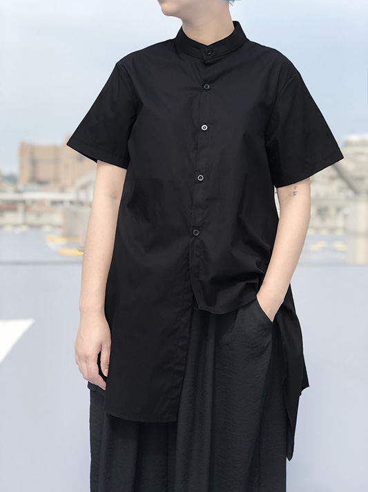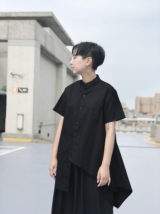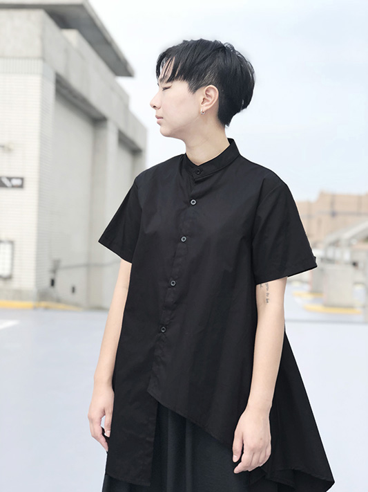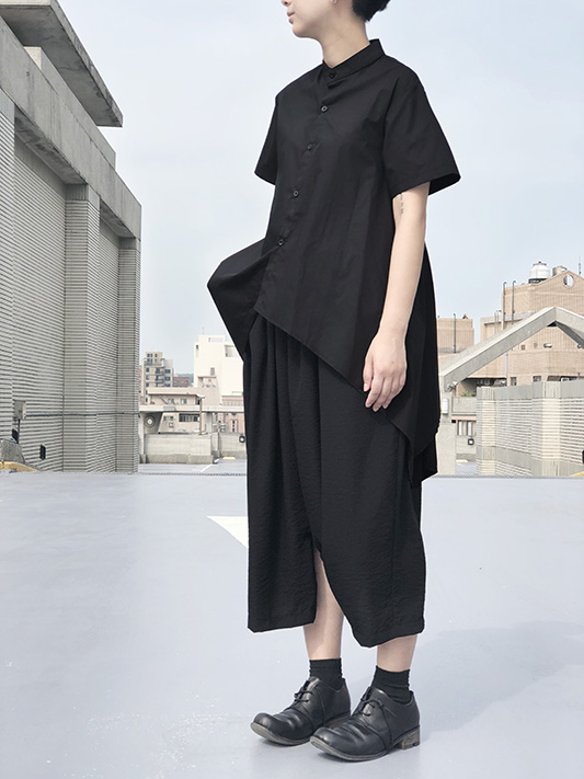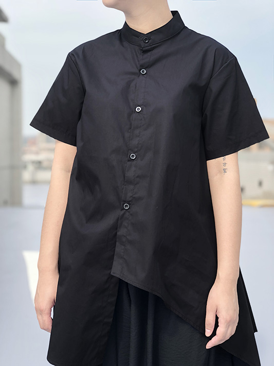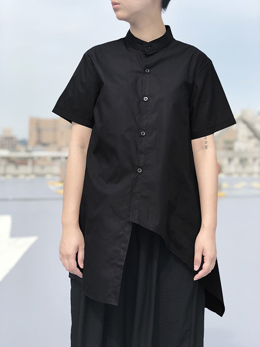 Jul 18SS NEW 立體挺料小立領不對稱解構襯衫 黑
